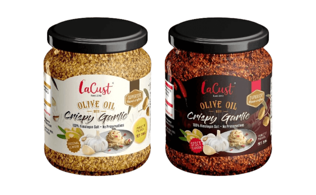 A vegan-friendly selection featuring the Original Garlic Flavor, made with premium black sesame oil, and the Spicy Crispy Garlic, infused with extra virgin olive oil.